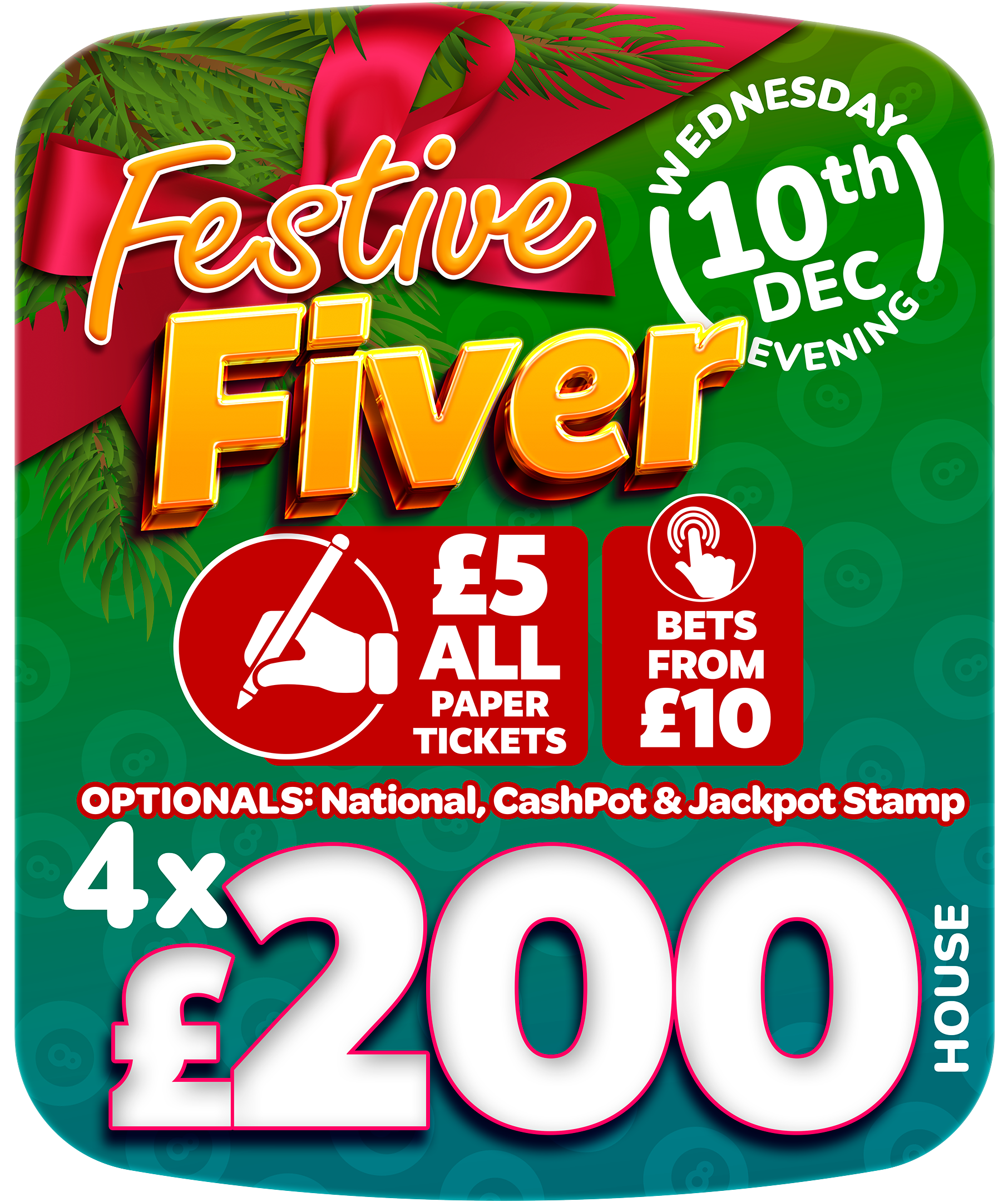 | Cashpot £1, Early £1.50, National £2, Jackpot stamp £2. Electronic bet from £13 | |