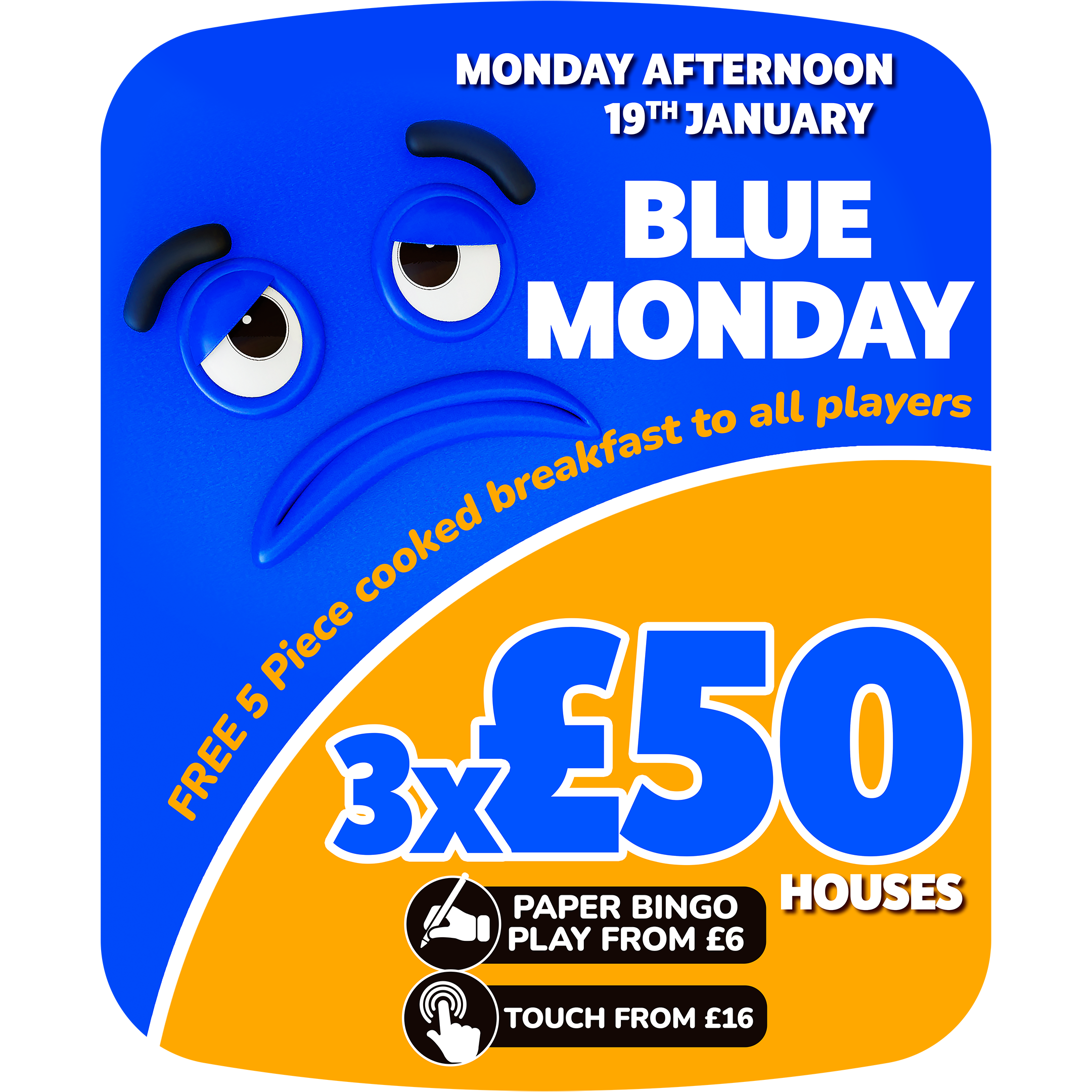 | Afternoon | 3x £50, 3x £25 Full Houses |